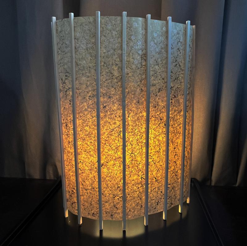Le papier Washi n'est pas doublé de papier rigide afin de conserver la transparence et la légèreté qui caractérisent les lampes japonaises et de permettre aussi la mobilité de la l'abat jour. L'abat jour peut être serré ou ouvert afin d'éclairer par exemple un pan de mur créant ainsi un jeu d'ombre.