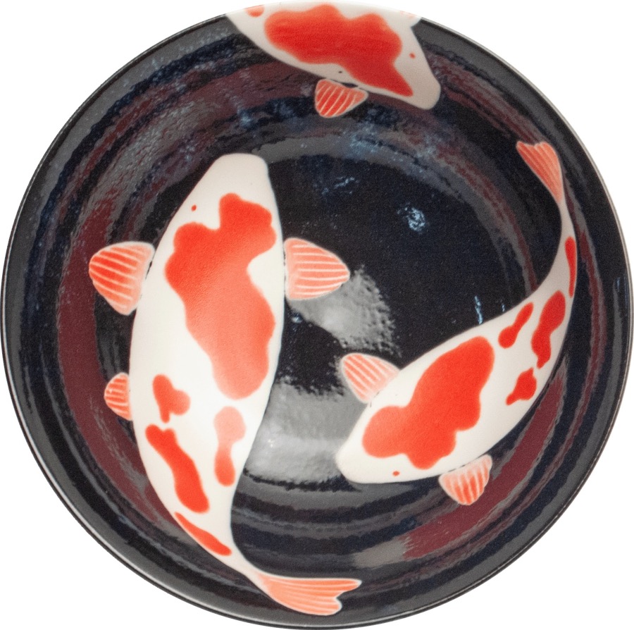 2 Grands bols évasés en céramique japonaise indigo décorés de carpe koï pour les ramen, une jolie salade ou pour un poke bowl.