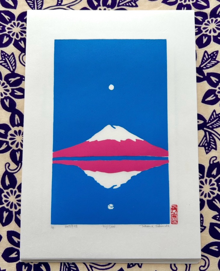 Lino-gravure "Fuji-san " de la série sur la culture japonaise chère à Takuma Shindo .