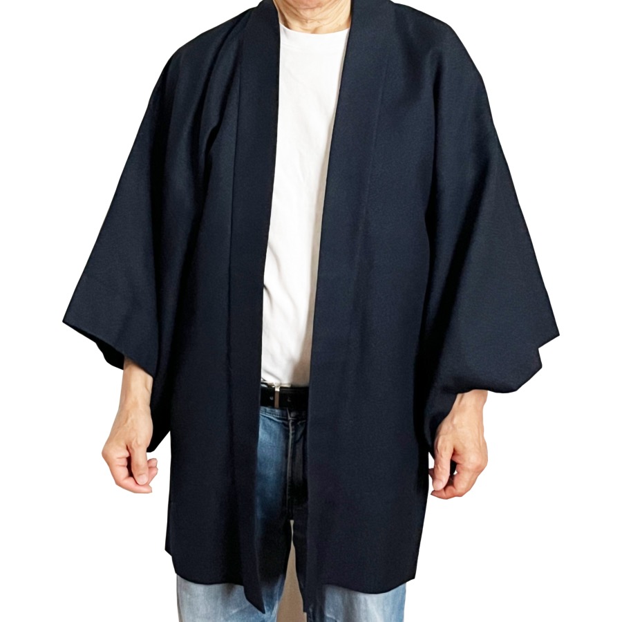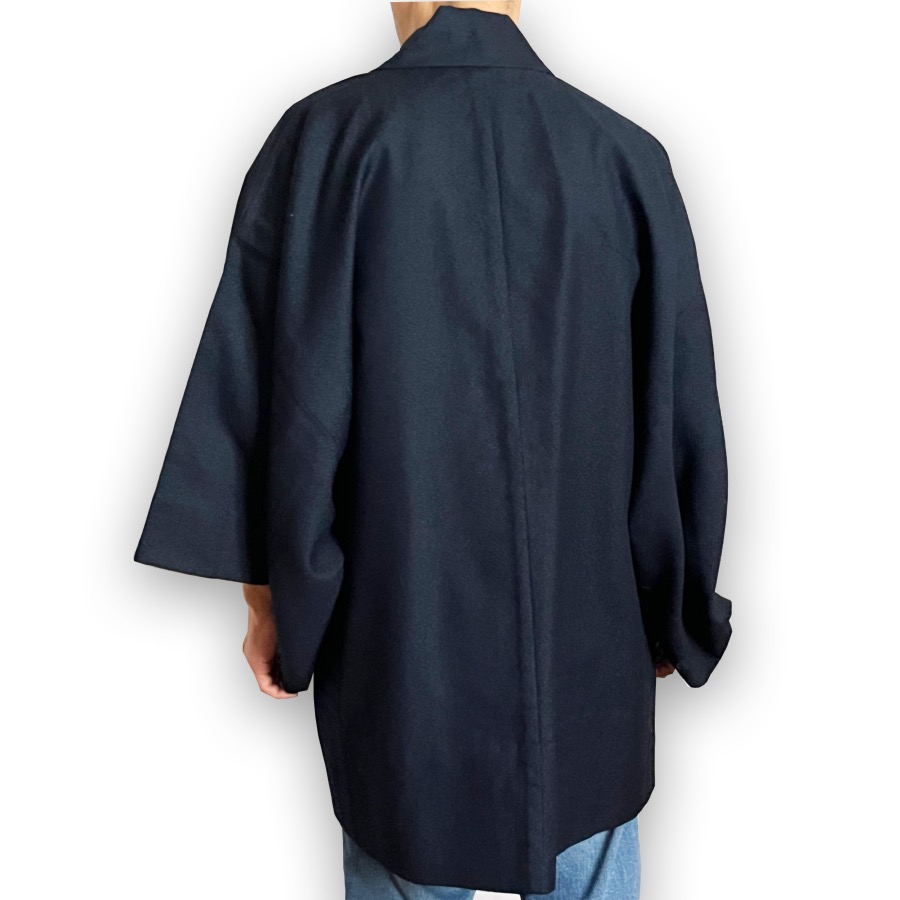 Belle veste traditionnelle japonaise, haori masculin en soie et laine indigo assez épaisse et doublée juste sur le haut.