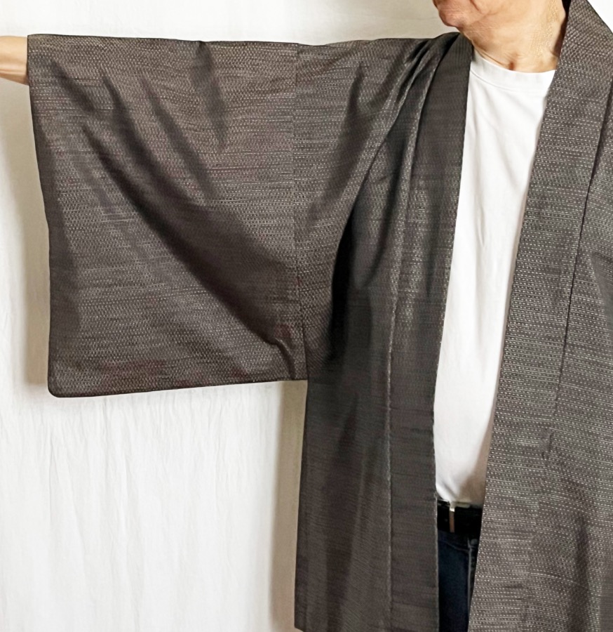 La veste haori est le vêtement traditionnel japonais que nous pouvons le plus facilement nous accaparer en vêtement d'intérieur ou d'extérieur, très élégant sur un kimono ou un jean. Sur une tenue sobre parfait pour une soirée.